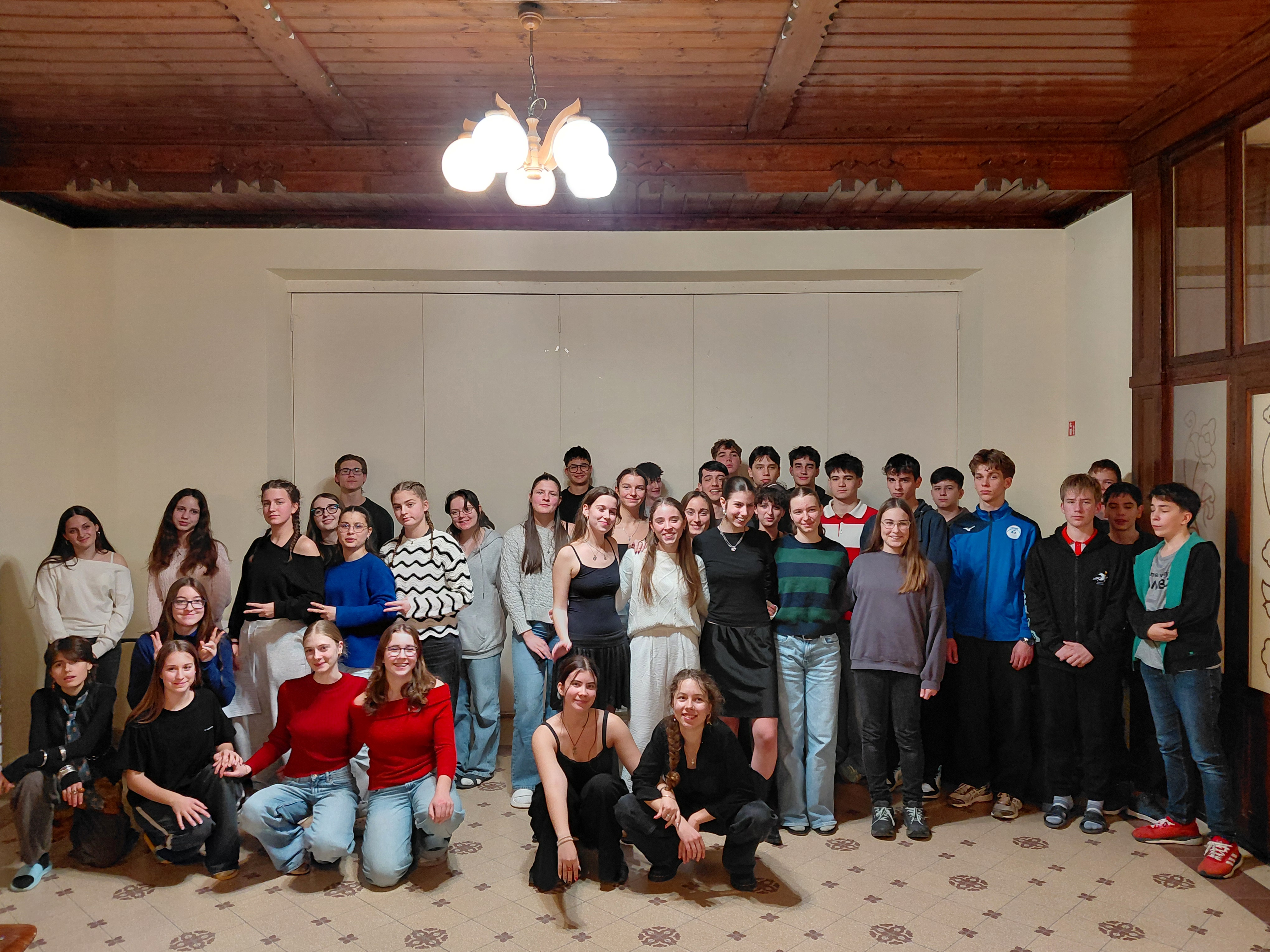 Karácsonyi pulcsis tanár-diák csoportképpel kíván mindenkinek Áldott Karácsonyt, Boldog Új Évet és tartalmas pihenést a téli szünetben a Diákönkormányzat!