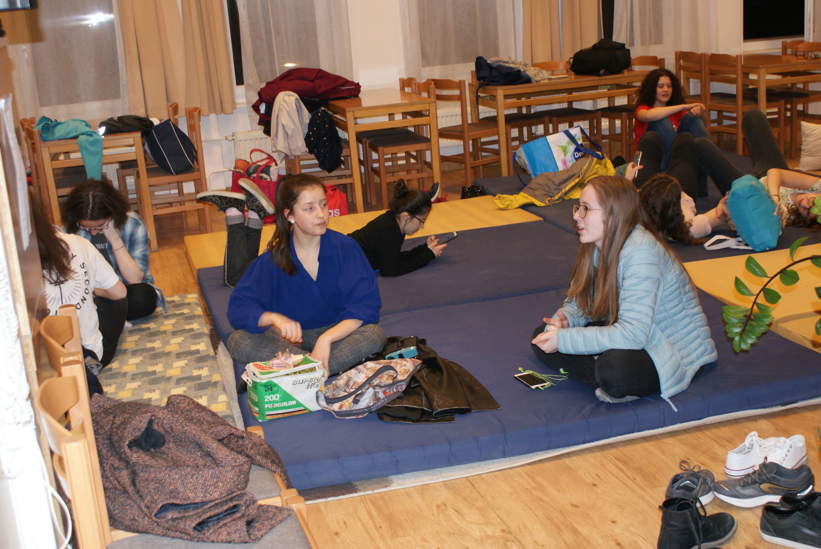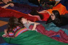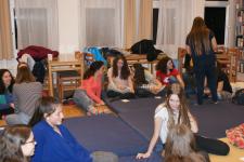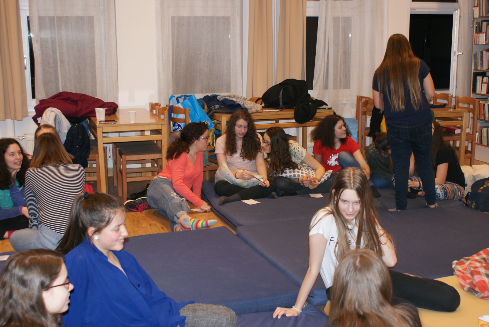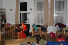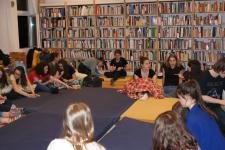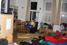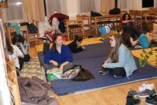 Pénteken 25 elszánt olvasni szerető ember arra szövetkezett, hogy egy különleges éjszakát töltsön együtt a könyvtárban. Néhányan már harmadik alkalommal, egészen sokan másodszor és tízen először vetették be magukat a szivacsokkal bélelt olvasóterembe. Hálózsákkal, kispárnával és egy ajánlandó könyvvel a kezükben érkeztek és széles jókedvvel a lelkükben. Bizonyosak voltak abban, hogy az a hely, ahová naponta nem mindig szívesen látogatnak, napnyugtakor a barátságosabb arcával fordul feléjük. Ismerkedő kör, ajánlások, szavazás és pizza. Hangtalan bolyongás eloltott lámpák mellett a folyosón. Felszabadult, légies balett mozdulatok a sötétben, természetesen zokniban és ijesztgetés… Végül hajnalig tartó olvasás. Szóval minden a megszokottak szerint…