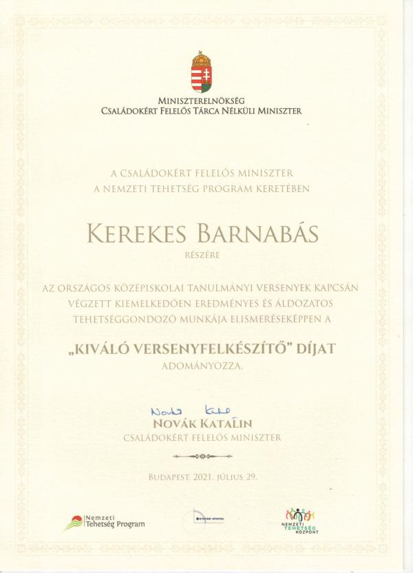Kiváló versenyfelkészítő díj