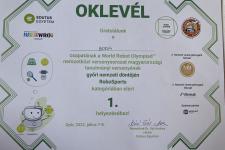 A GONDA BENEDEK(9.d), GONDA BOTOND(7.b) és KOREN DÁNIEL(7.b) alkotta robotika csapat országos ELSŐ HELYEZÉST szerzett a WRO (World Robot Olympiad) magyarországi döntőjében RoboSports kategóriában. Így kvalifikációt szereztek a WRO németországi világdöntőjére.