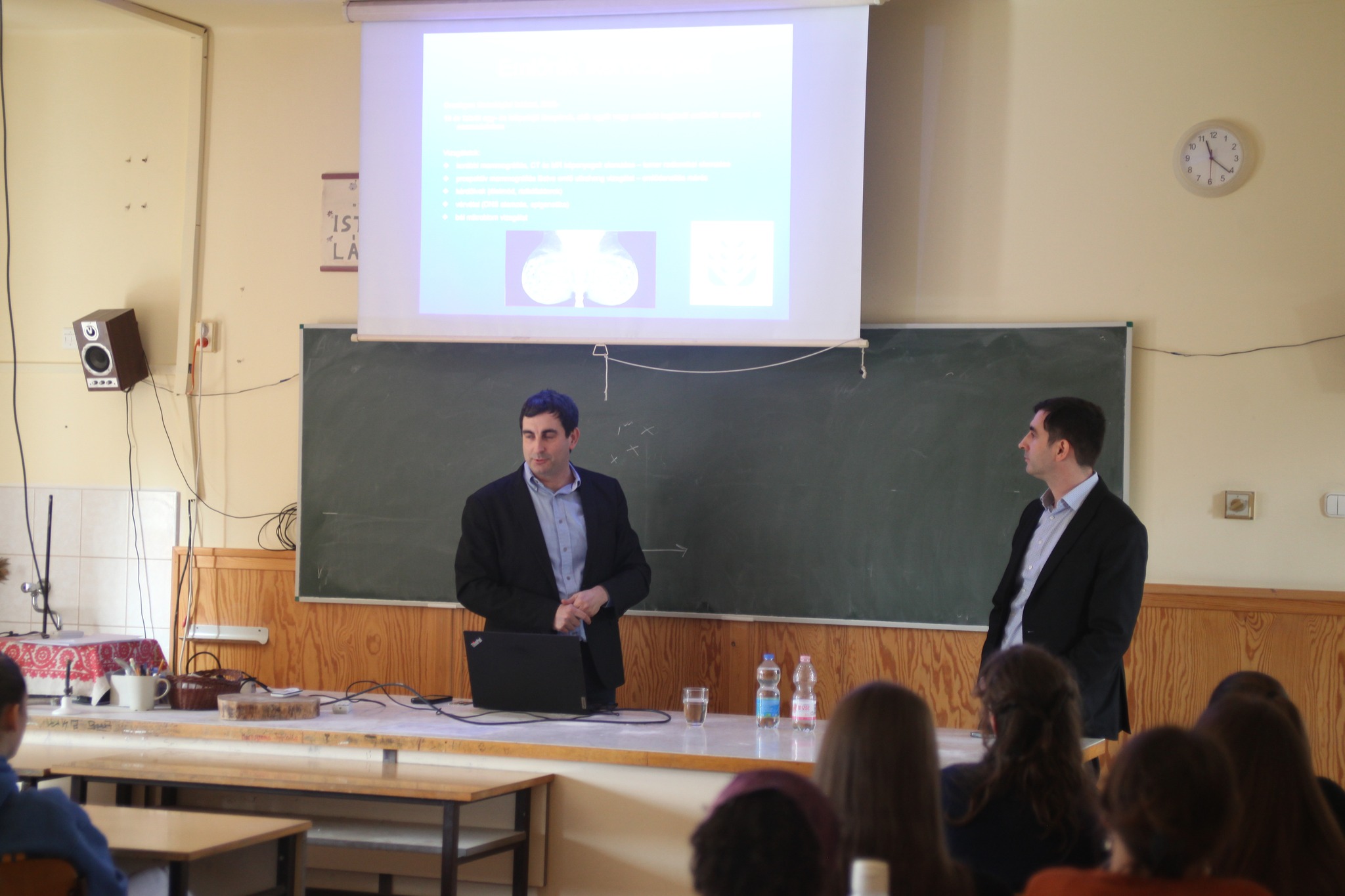 ...és a Galápagos-szigetektől a kiégés pszichológiájáig. Igazán nem panaszkodhattunk, annyiféle érdekes és izgalmas előadás tarkította ezt a tudományos napot, ahol szokás szerint három idősávban, telt házas termekben mutatták be nevesebbnél nevesebb meghívott előadóink, hogy miért is érdemes dolgozni, kutatni, lelkesedni, küzdeni. A teljesség igénye nélkül - többeket immáron sokadszorra - köszönthettük Zoboki Gábor építészt, Hartlein Károly fizikust, Tapolyai Emőke pszichológust, a gladiátorok bemutatóját, hallgathattunk többféle nyelvészeti előadást. Dr. Tárnoki Ádám és Dávid iker-biológusokként mutatkoztak be, volt diákunkat, Bódi Kingát pedig a Szépművészeti Múzeum munkatársaként láthattunk viszont, Berzsák Zoltán a hit és építészet viszonyát mutatta be a Károli új épületén. De tanáraink is kitettek magukért, Ecuadortól a régészeten és a néptánctörténeten át a jazzig sokféle érdekességről számot adtak. A képek pedig szolgáljanak ízelítőül erről a szellemi utazásról!